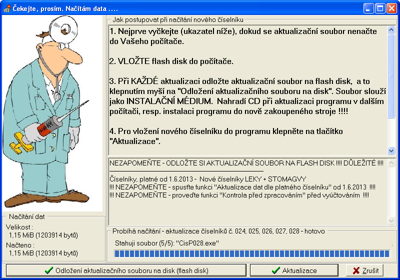 Po označení požadovaných balíků aktualizací a kliknutí na "Stáhnout", vyčkejte na uložení číselníků do vašeho počítače: