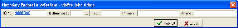 Vkládání IČP žadatele