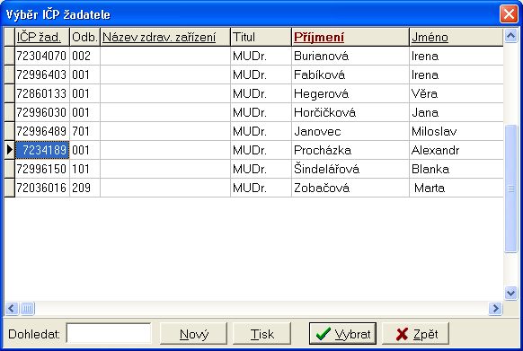 Pro praktické lékaře vypadá obrazovka takto :